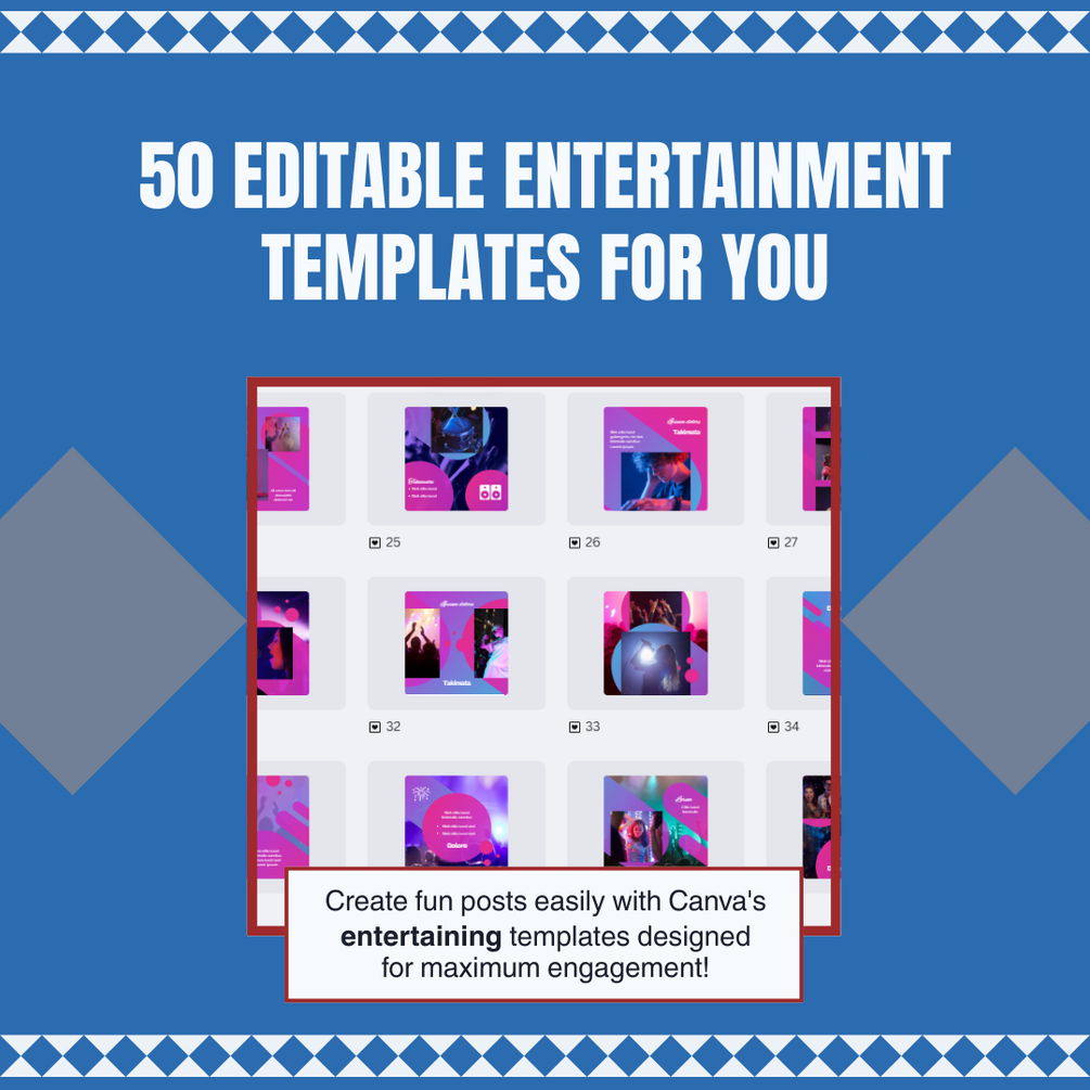 What’s Included: 50 Canva templates for social media Formats for Instagram, Facebook, and TikTok Bold, creative designs made for entertainment Fully customizable for your brand