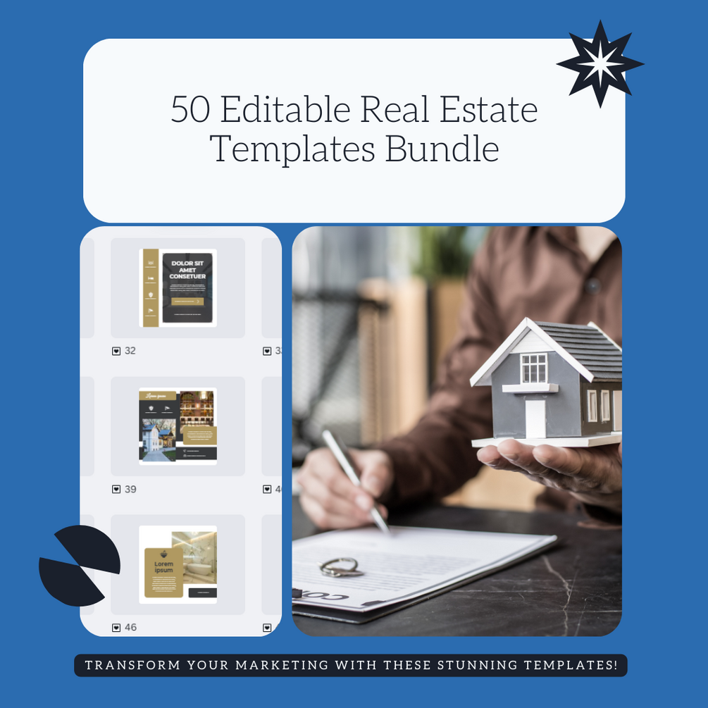 Capture attention and generate leads with 50 premium Canva templates tailored for the real estate industry. Whether you're a realtor, property agent, or managing a real estate agency, these posts help you highlight listings, promote open houses, share client reviews, and establish authority in the market.
