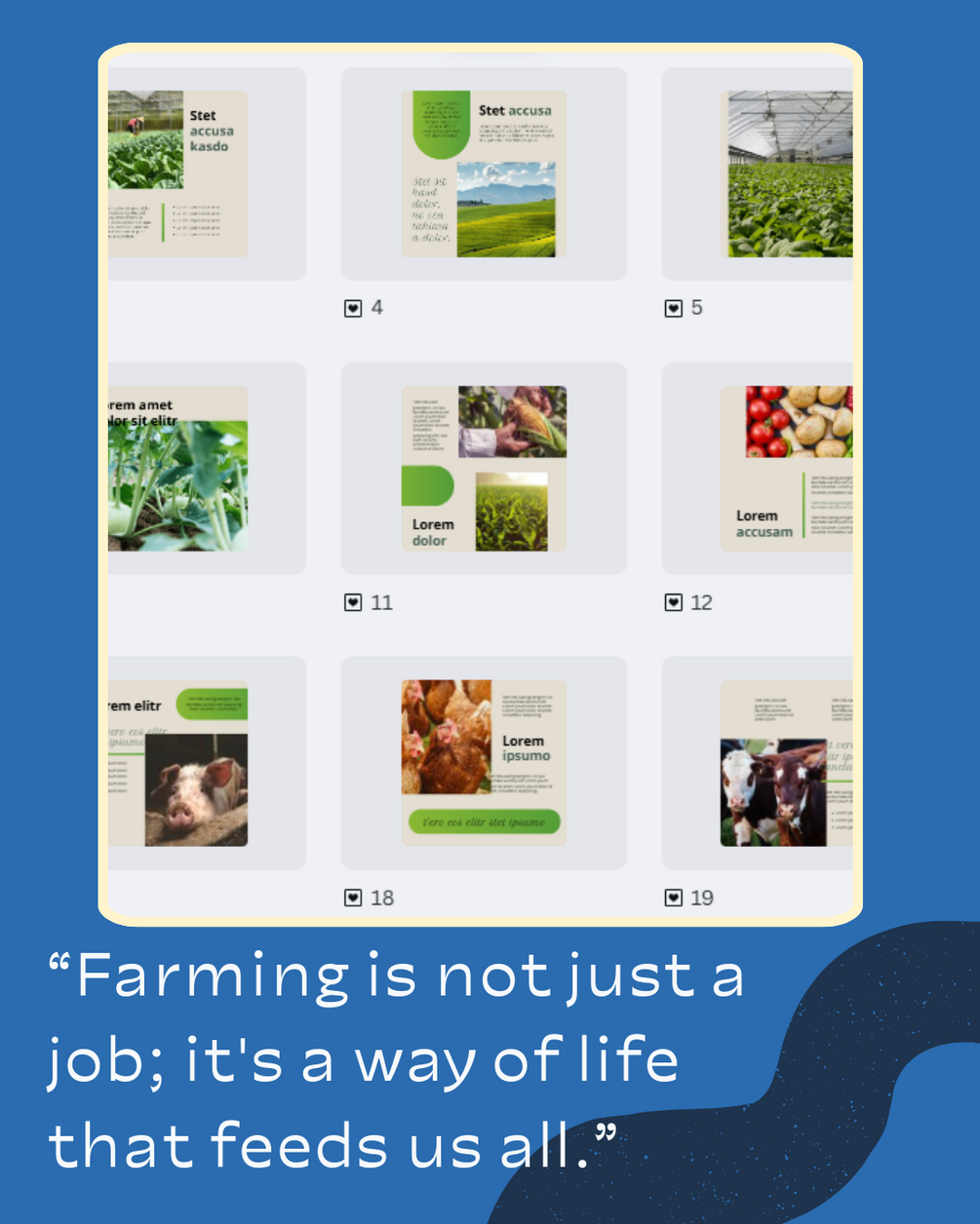 Whether you're promoting fresh produce, farm updates, harvesting tips, or eco-farming practices – these templates save time and maintain brand consistency.