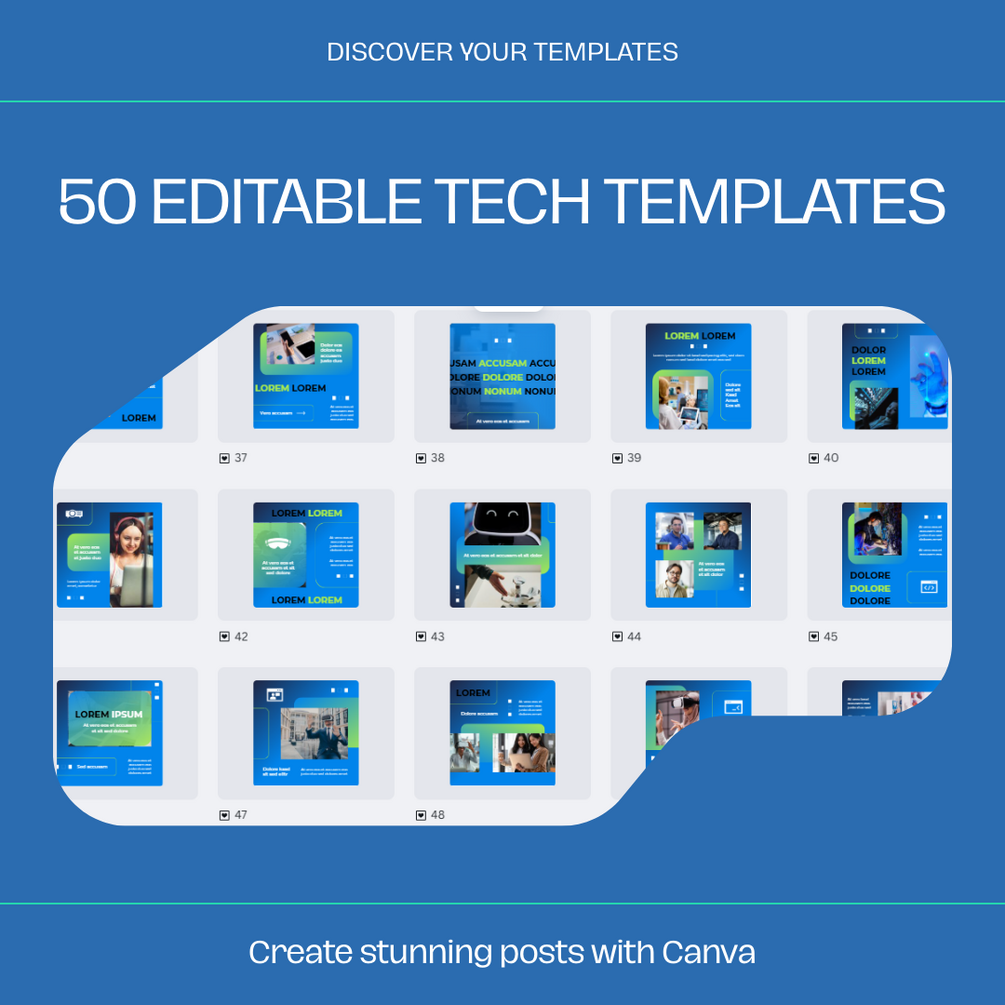 Technology Social Media Templates – 50 Editable Canva Posts for Tech Brands & Influencers