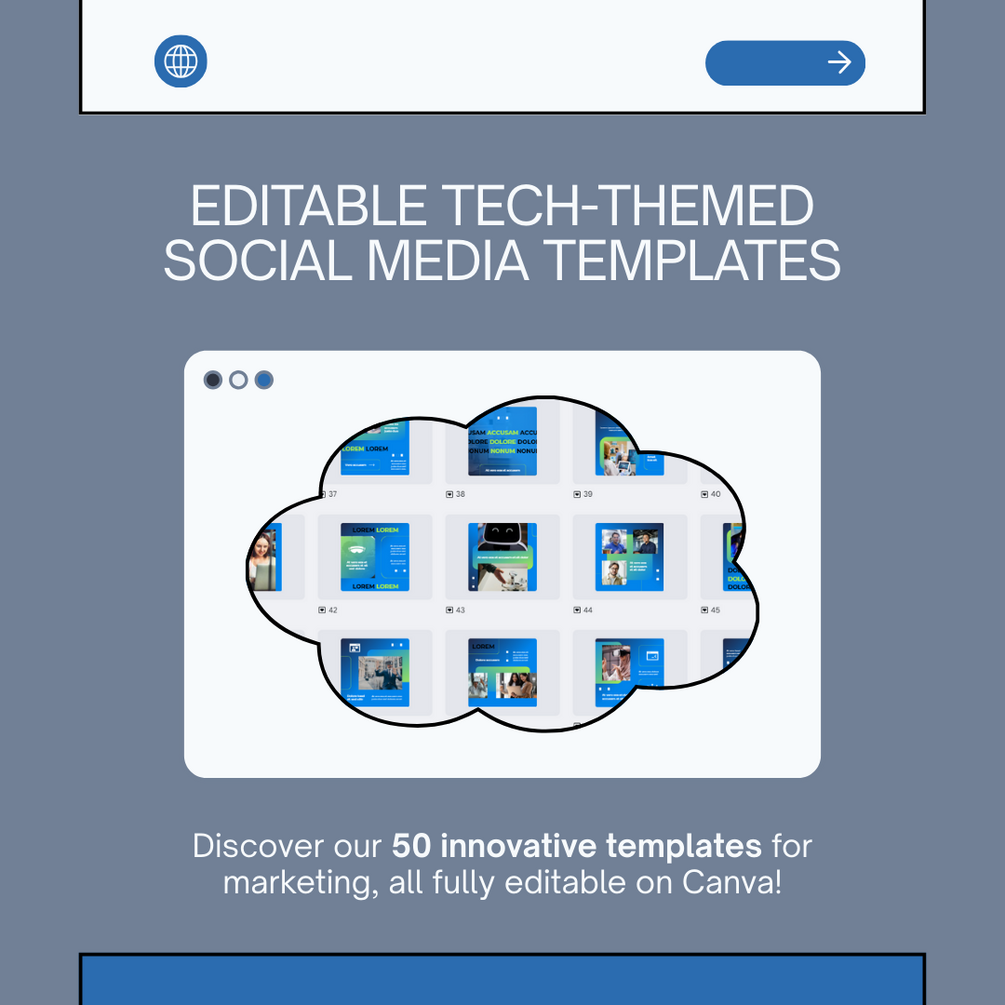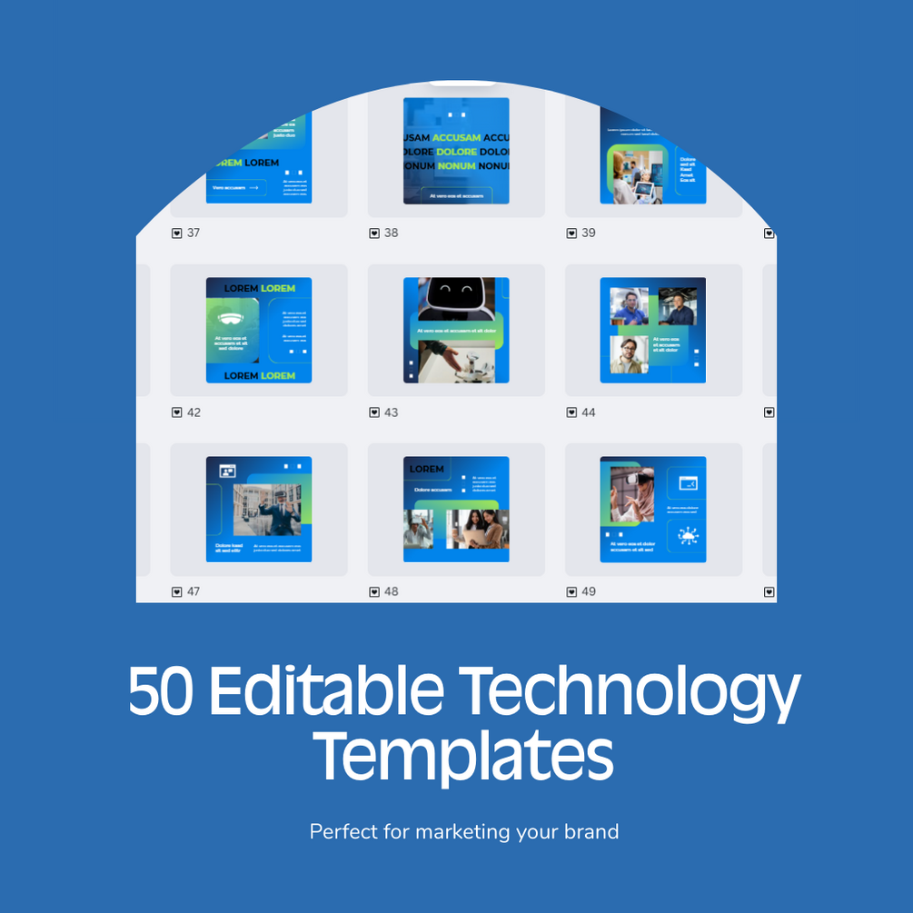 Elevate your tech brand’s social media presence with 50 editable Canva templates, designed for technology companies, influencers, and startups. These templates make it easy to share product launches, tech tips, reviews, software updates, and company announcements in an eye-catching way.
